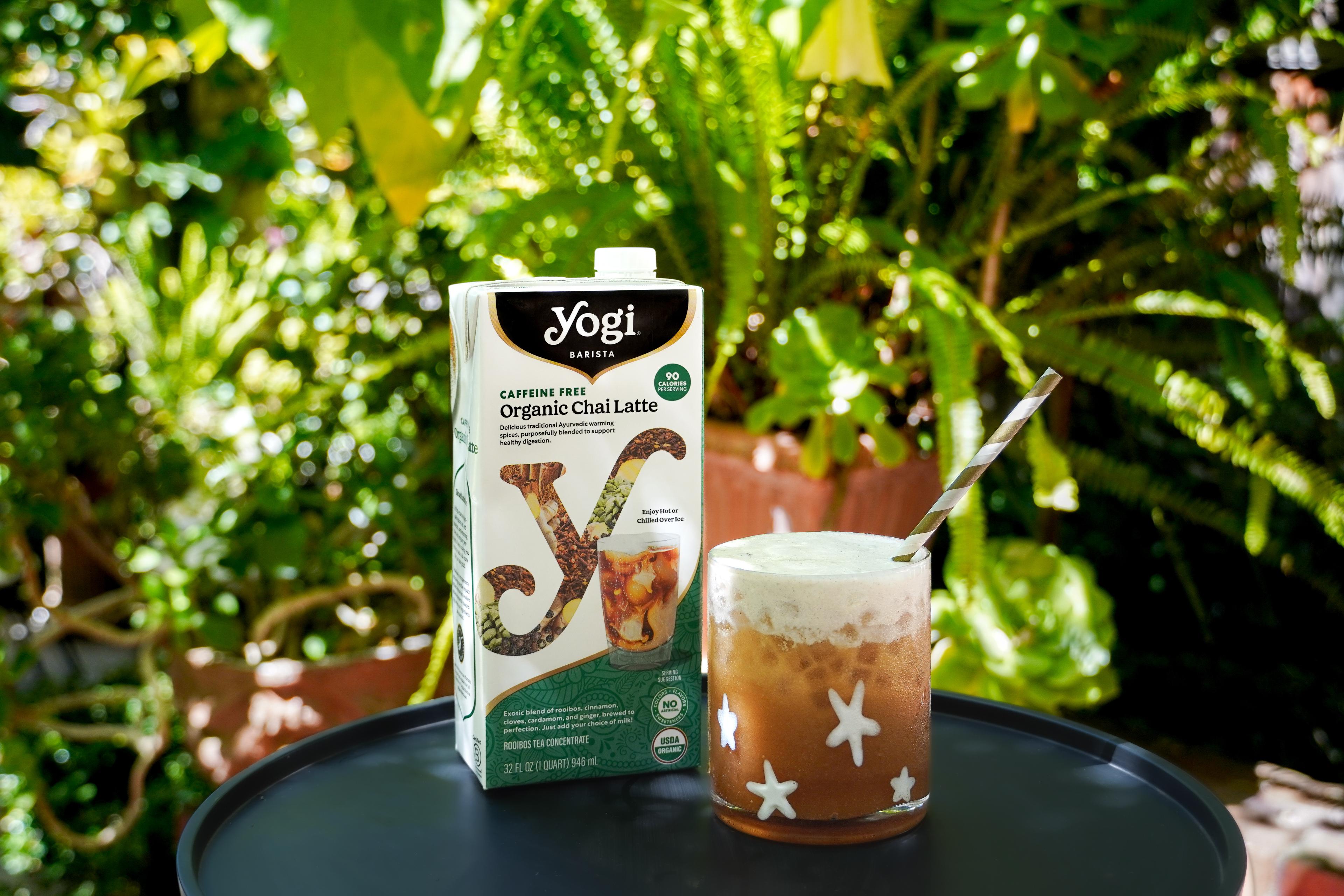 - Add ice, coconut water, and Yogi Barista Chai concentrate to a glass!