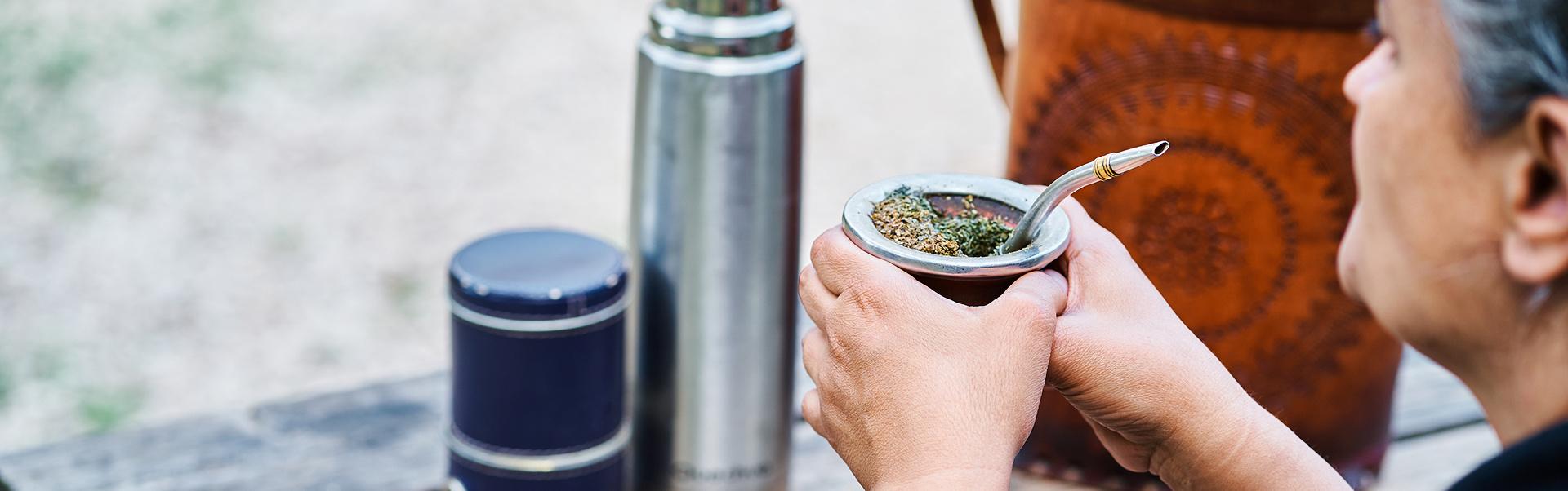 Le yerba maté, ou *Ilex paraguariensis*, est un arbuste à feuilles persistantes de la même famille que le houx, originaire du Paraguay, du Brésil, de l’Uruguay et de l’Argentine. Les feuilles de l’arbuste sont séchées, rôties, réduites en poudre, puis infusées pour préparer le yerba maté, communément appelé simplement « maté ». La consommation du yerba maté remonte aux célébrations précolombiennes des Guaranis, un peuple autochtone vivant principalement au Paraguay, ainsi qu’en Argentine et au Brésil. On croit que ce thé était autrefois savouré dans le cadre de cérémonies festives en l’honneur de Tupâ, le dieu de la pluie et de l’eau.