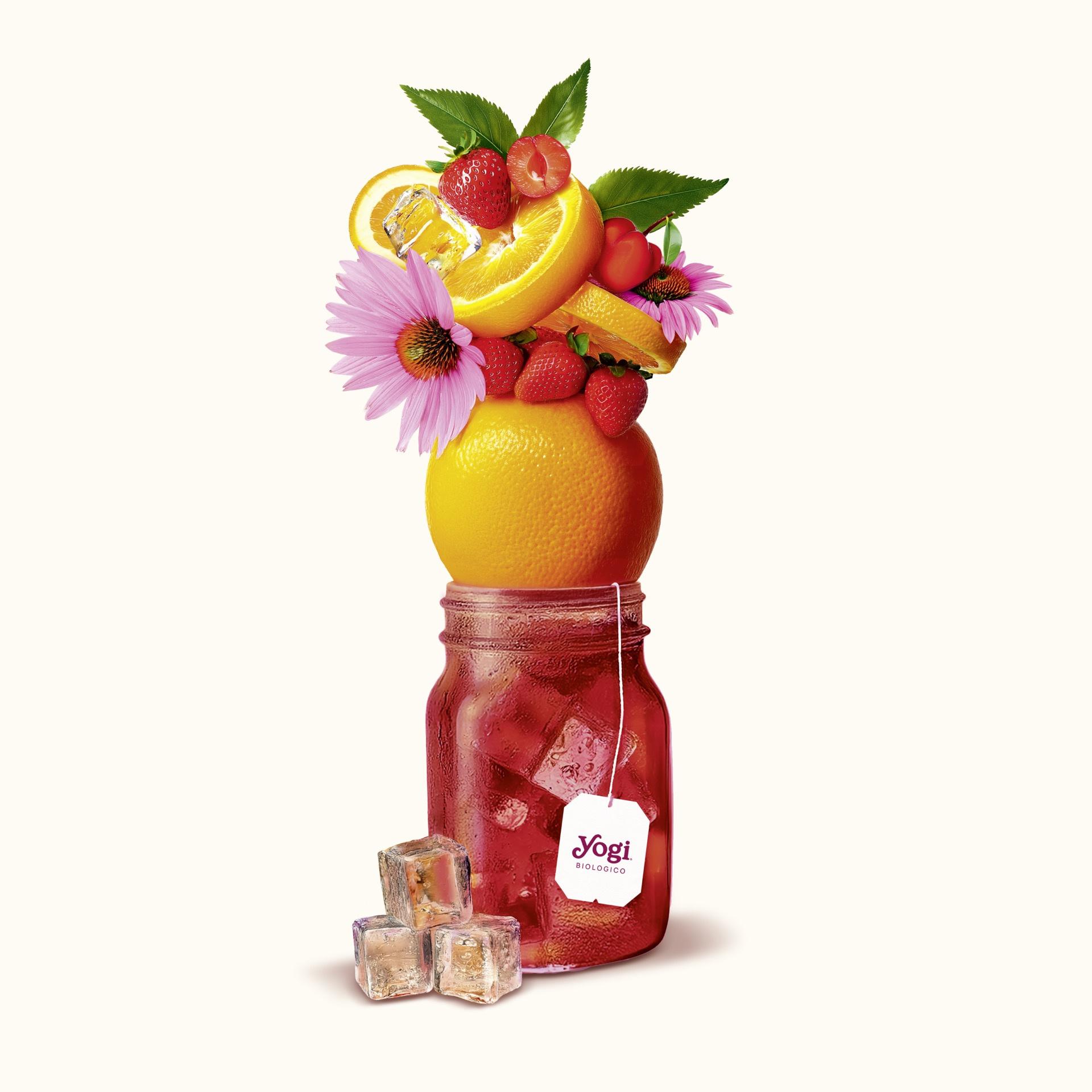 Ibisco*, rosa canina*, aroma naturale di fragola*, succo di acerola disidratato*, mela*, echinacea*, scorza d’arancia*, salvia*, foglie di mora dolce*, stevia*, aroma naturale di fiori d’arancio, aroma naturale di ribes nero*, fragole*, succo di melagrana*. *certificato biologico